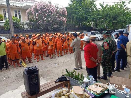 Camat Tambora, Holi Susanto dalam memimpin apel memberikan pengarahan, bahwa kita membantu membersihkan lokasi kebakaran di lokasi RT 011 RW 07 dengan personel dari berbagai instansi gabungan.