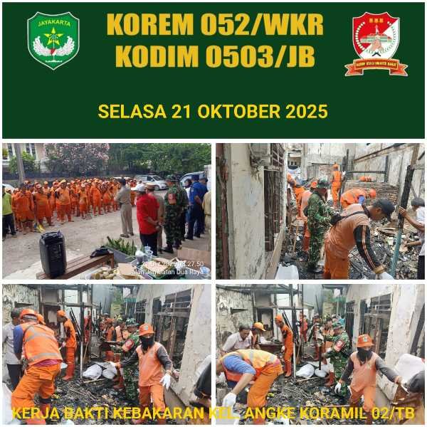 progresifjaya.co.id, JAKARTA – Tiga pilar Kecamatan Tambora melaksanakan kerja bakti bersama dalam rangka pembersihan puing-puing pasca kebakaran yang terjadi pada Jumat, 17 Oktober 2025 lalu.