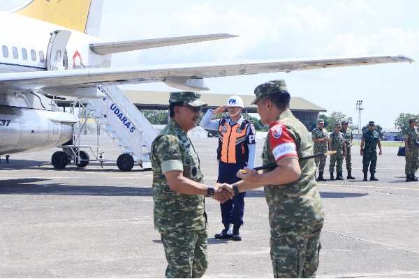 progresifjaya.co.id, MAKASSAR – Komandan Lanud Sultan Hasanuddin, Marsma TNI Arifaini Nur Dwiyanto menyambut kunjungan kerja Wakil Kepala Staf Angkatan Udara (Wakasau), Marsekal Madya TNI Ir. Tedi Rizalihadi S, MM beserta rombongan di Apron Base Ops Lanud Sultan Hasanuddin, Makassar, Rabu (5/11/2025).