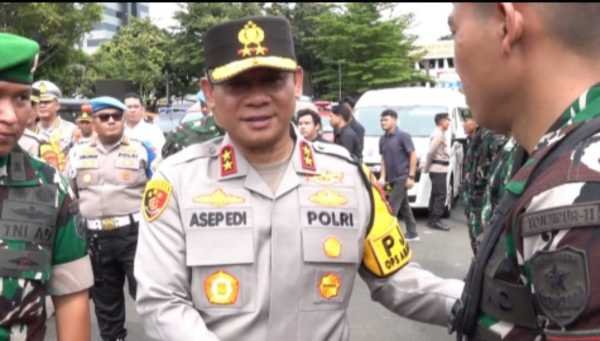 Kapolda Metro Jaya, Irjen Pol Asep Edi Suheri bertegur sapa akrab dengan personel gabungan yang terlibat dalam aksi tanggap darurat bencana Polda Metro Jaya
