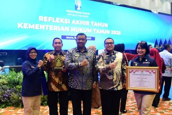 Penghargaan tersebut diberikan langsung oleh Menteri Hukum Republik Indonesia, Supratman Andi Agtas kepada Deputi Opsla Laksda Bakamla Eko Wahjono dalam acara Refleksi Akhir Tahun Kementerian Hukum tahun 2025 yang digelar di Kemayoran, Jakarta Pusat, Kamis (18/12/2025).