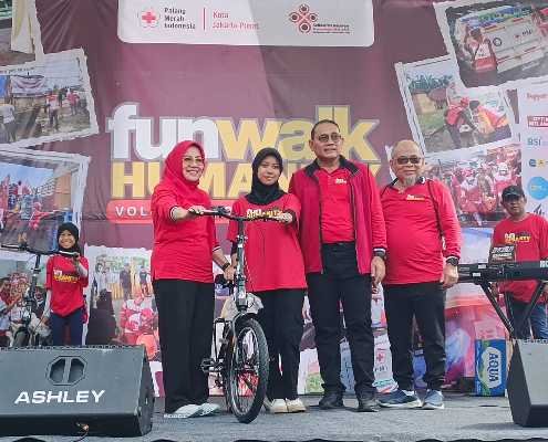 progresifjaya.co.id JAKARTA – Wali Kota Jakarta Pusat Arifin didampingi Ketua TP PKK Wetri Yenny Arifin, Ketua PMI Jakarta Pusat H. Asep Djuanda Sunarya, Asisten Kesejahteraan Rakyat Reza Phahlevi dan Camat Gambir M. Iqbal melepas secara langsung Fun Walk Humanity yang diselenggarakan oleh Palang Merah Indonesia (PMI) Jakarta Pusat yang berlangsung start finish di Barat Daya Silang Monas, Minggu (21/12) pagi