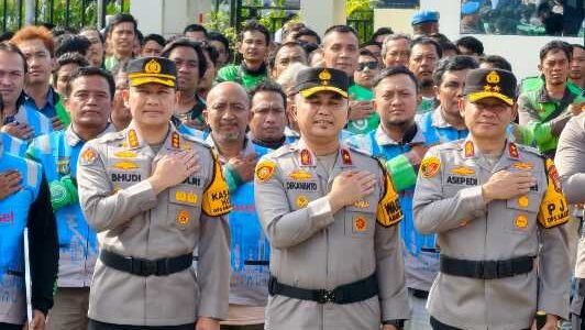 To Promote the Jaga Jakarta Program, the Polda Metro Jaya Hold an Ojol Presidium Roll Call and Handover of an Ojol Mart at the Polres Metro Tangerang City