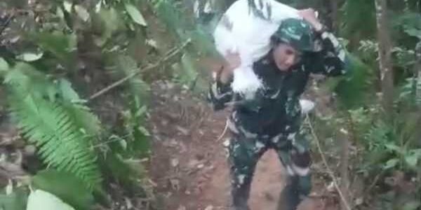 Terjang Cuaca Buruk, Satgas Gulbencal dan Yonif TP 905/TS Jalan Kaki Salurkan Logistik ke Desa Bonan Dolok