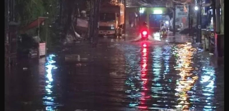 Di Jakarta Timur, luapan Sungai Ciliwung menjadi salah satu faktor utama yang menyebabkan ratusan rumah warga di bantaran sungai terendam banjir. Kondisi tersebut membuat genangan air bertahan hingga malam hari meski hujan telah mereda.