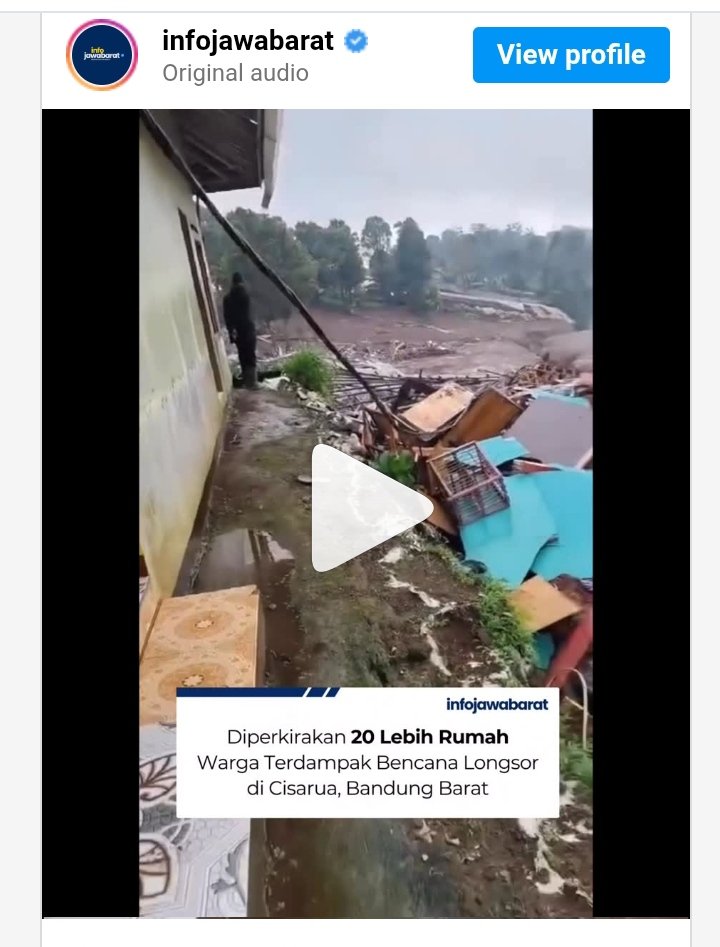 Video diunggah akun info jawabarat, nampak puluhan rumah hancur. Warga menyelamatkan diri.