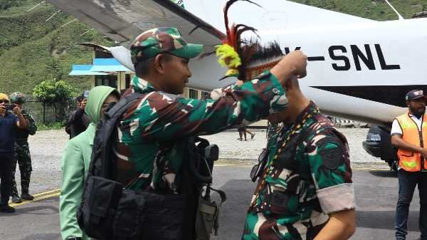 Disambut langsung di Bandara Kabupaten Puncak Jaya oleh Dandim 1714/Puncak Jaya, Letkol Inf Bagus Kurniawan M.Han bersama Ketua Persit KCK Cabang XLI Kodim 1714/PJ, Nyonya Bagus Kurniawan (yang memasangkan mahkota dan kalung Papua), Wakil Bupati Mus Kogoya S.E, para Komandan Satgas, dan unsur Forkopimda.
