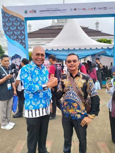 Jurnalis progresifjaya.co.id, Romli Rencong bersama Ketua Umum PWI di acara puncak Hari Pers Nasional (HPN) 2026 Serang. (Foto: R. Rencong)