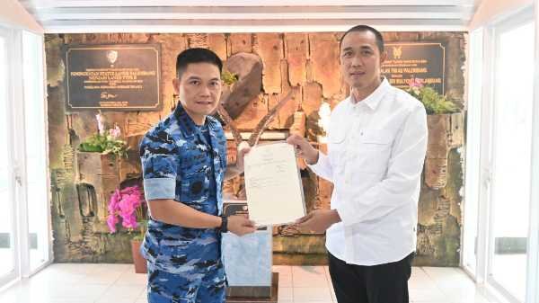 Sertifikat tanah tersebut diterima langsung oleh Danlanud SMH Kolonel Pnb Zulfikri Arif Purba, S.Sos., MS.(NSSS), dari Plt. Kepala Kantor Pertanahan Kota Palembang Mahyuddin, S.SiT., M.Si., di Lobby Rajawali Mako Lanud SMH, Palembang, Rabu (28/2/2026).