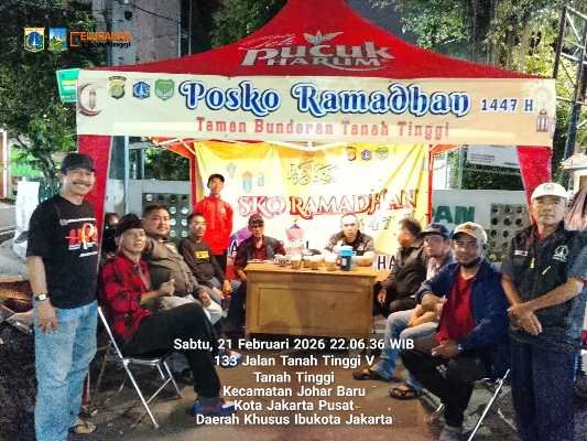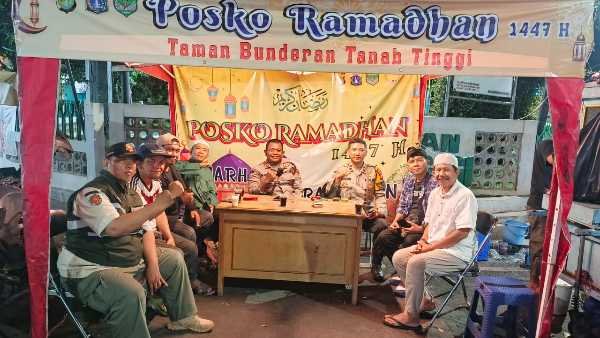 progresifjaya.co.id, JAKARTA – Wakapolsek Johar Baru AKP Aris Setiawan bersama Bhabinkamtibmas Kelurahan Tanah Tinggi Aipda Tangguh Yudho Perkoso menyambangi Posko Ramadhan Taman Bunderan Tanah Tinggi dalam mengantisipasi kamtibmas di bulan suci Ramadhan 1447 H, Minggu (22/2).