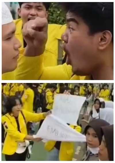 Lalu ada satu lagi mahasiswa pria yang menunjukkan sikap menunjuk-nunjuk muka seorang personel pengamanan sembari mengeluarkan kata-kata dengan nada membentak.