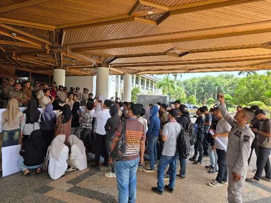 Aksi massa yang dimulai sekitar pukul 11.45 WIB itu menuntut Pemerintah Aceh membuka secara transparan dugaan adanya korupsi dalam penanganan bencana hidrometeorologi 2025 di Provinsi Aceh.