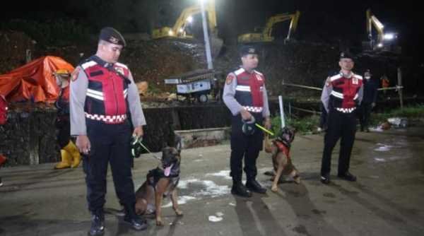 A K-9 tracking dog unit was also deployed in the search for victims in the landslide at the Bantargebang Landfill.