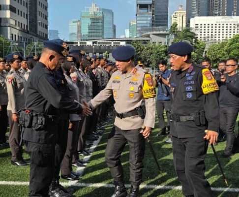 Turut hadir dalam apel ini Wakapolda Metro Jaya, Brigjen Pol Dekananto Eko Purwobo, Dansat Brimob Polda Metro Jaya, Kombes Pol Henik Maryanto, para pejabat utama (PJU) Polda Metro Jaya, serta para Kapolres. (Bembo)
