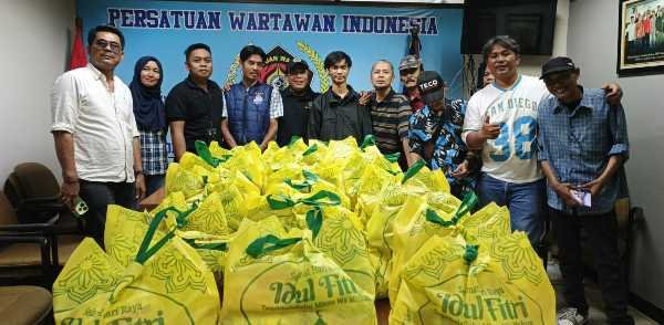 Ketua Pokja PWI Walikota Jakarta Selatan, Joni Matondang (duduk) saat menyerahkan paket sembako bagi anggota, Selasa (17/3/2026).