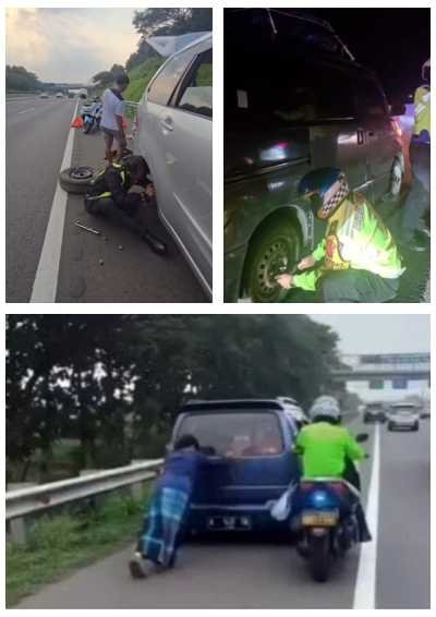Kendaraan tersebut akhirnya berhasil dikeluarkan dari jalur tol melalui Gerbang Tol (GT) Cilameri dengan aman. Pengemudi mobil yang dibantu pun menyampaikan rasa terima kasih dan apresiasi yang mendalam atas bantuan spontan yang diberikan. Dan masih di hari yang sama, pada malam harinya pertolongan juga diberikan oleh AKP Hardian untuk membantu pengendara mengganti ban mobilnya yang pecah di Tol Cipali. Salut. (Bembo)