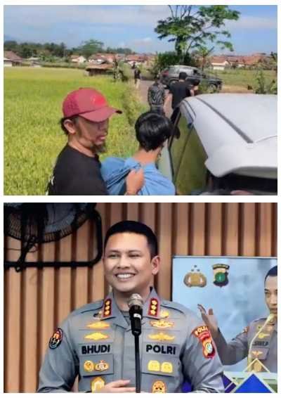Rekaman video penangkapan pelaku pembunuhan di area persawahan Kabupaten Majalengka, Jawa Barat (atas). Kabid Humas Polda Metro Jaya, Kombes Pol Bhudi Hermanto (bawah).