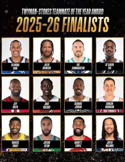 12 pemain NBA dari Wilayah Timur dan Barat yang jadi nominator pemenang penghargaan Finalis Twyman-Stokes Teammate of the Year tahun 2026.