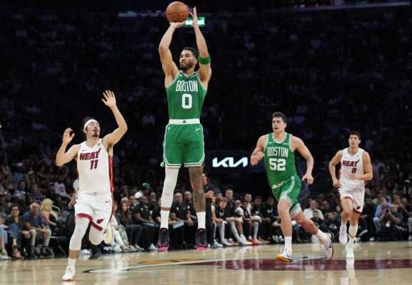 Pertandingan antara Boston Celtics melawan Miami Heat yang berakhir dengan skor 147 – 129 untuk kemenangan Boston Celtics.