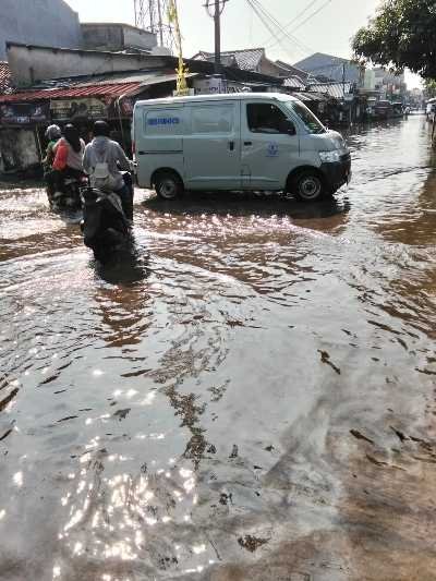 Sebagai laporan bahwa pada pagi ini wartawan media Progresif Jaya sedang memantau keadaan lokasi banjir di Perumnas Tiga masih belum dilintasi kendaraan bermotor baik roda dua dan roda empat akibat hujan semalam.