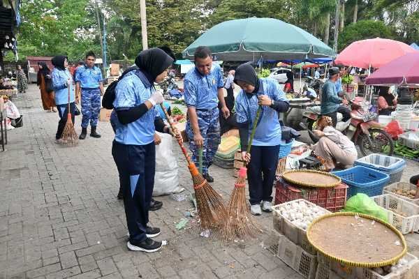Kegiatan yang dilaksanakan secara gotong royong ini difokuskan pada pembersihan area pasar serta lingkungan sekitar guna menciptakan kondisi yang bersih, sehat, dan nyaman bagi masyarakat.