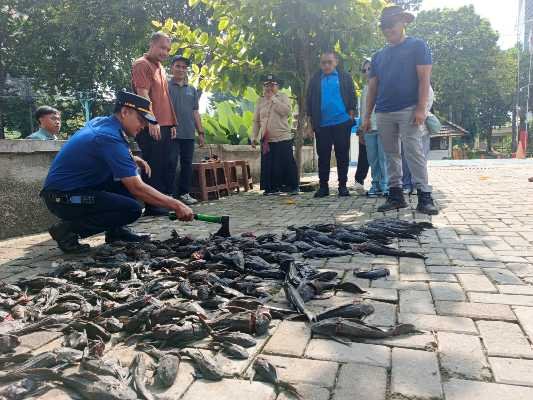 Pembersihan dan penangkapan ikan sapu-sapu dibawa ke Pusat Produksi Inspeksi dan Sertifikasi Hasil Perikanan (PPISHP) Ciganjur.