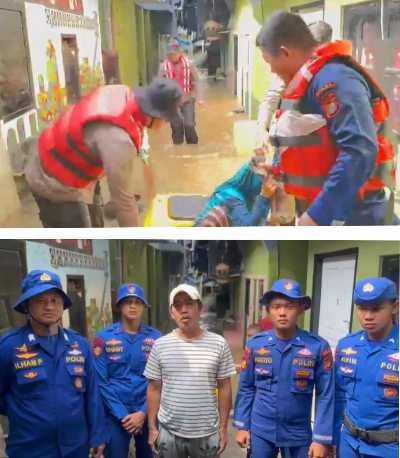 Swift Work from the Polda Metro Jaya’s Dit Polairud Assists in Evacuating Flood-Affected Residents in Kampung Melayu