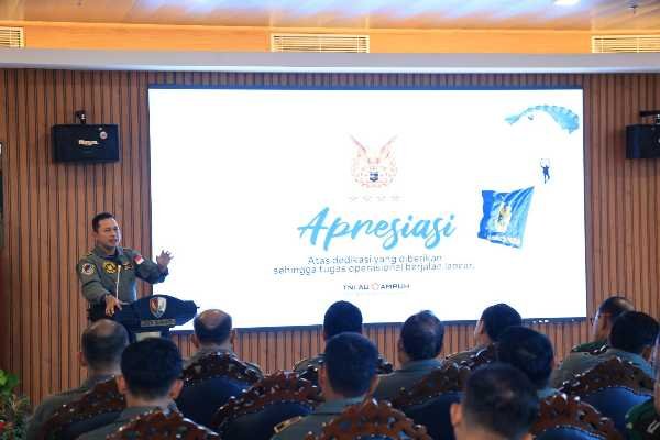 Kasau juga menjelaskan terkait perubahan karakter peperangan modern yang bersifat multi-domain, mencakup darat, laut, udara, siber, hingga ruang angkasa, serta dipengaruhi dinamika geoekonomi global, menuntut adaptasi cepat dan peningkatan kesiapan personel TNI AU.