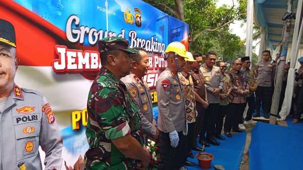 Kapolda Banten Lakukan Peletakan Batu Pertama Pembangunan Jembatan Merah Putih Presisi dan Penanaman Pohon di Kecamatan Pasar Kemis