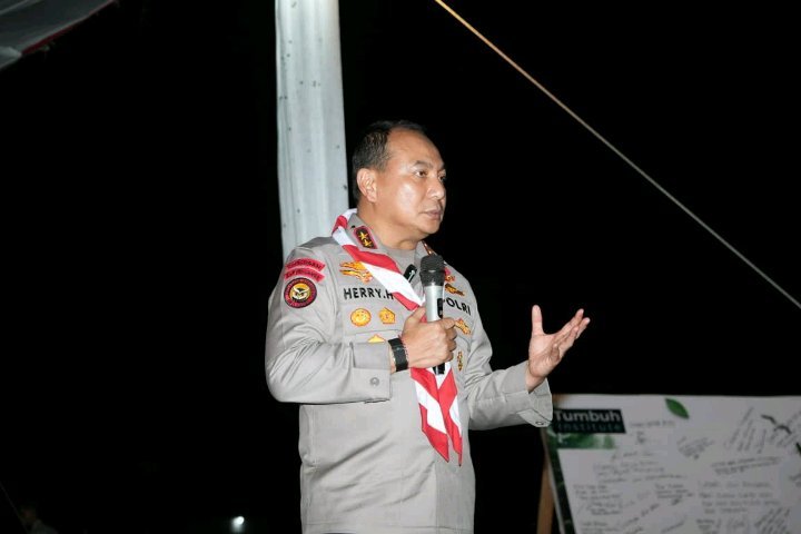 Kapolda Riau, Irjen Pol Herry Heryawan saat memberikan sambutannya di kegiatan Camping Kebangsaan Mahasiswa Riau di kawasan Rimbang Baling.