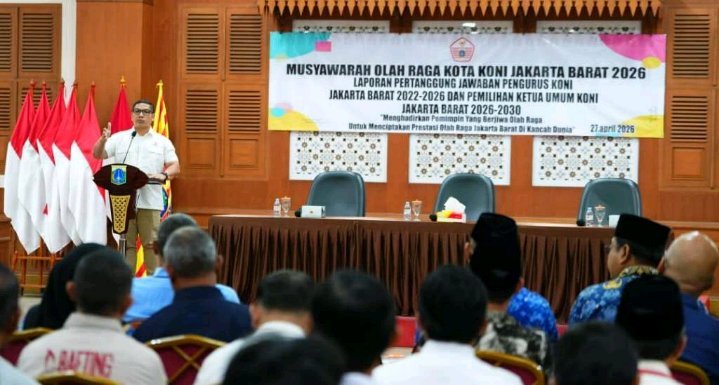 progresifjaya.co.id, JAKARTA – Komite Olahraga Nasional Indonesia (KONI) Jakarta Barat menggelar Musyawarah Kota (Muskot) 2026, di Ruang Ali Sadikin, Gedung B Kantor Wali Kota Adm Jakarta Barat, Jalan Raya Kembangan, Jakarta Barat, Senin (27/4/2026).