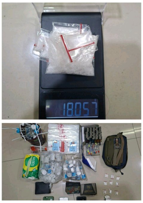 “Dari tangan pelaku, kami menyita barang bukti berupa 11 paket sabu dengan berat bruto 18,57 gram, 14 alat hisap, 12 cangklong, puluhan korek api modifikasi, serta sejumlah botol yang diduga digunakan untuk konsumsi sabu,” jelas Kombes Pol Reynold.