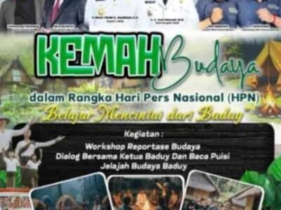 progresifjaya.co.id, SERANG – Persatuan Wartawan Indonesia (PWI) Provinsi Banten bekerja sama dengan Pemerintah Kabupaten Lebak akan menggelar Kemah Budaya Hari Pers Nasional (HPN) 2026 dengan mengusung tema “Belajar Mencintai dari Baduy”. Kegiatan tersebut dijadwalkan berlangsung selama dua hari, pada 16–17…