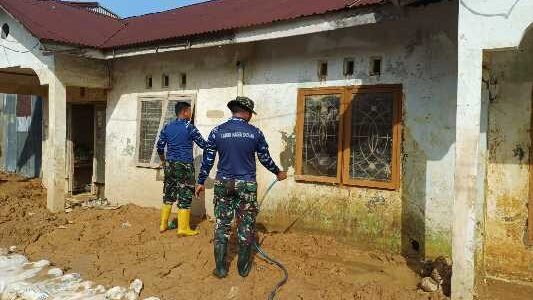 Terus Berlanjut, Personel Lanud Sutan Sjahrir Bersihkan Sisa Lumpur Pascabanjir di Kota Padang
