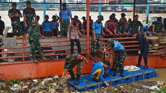 Lanud Sri Mulyono Herlambang dan Pemkot Palembang Bersihkan Sampah di Sungai Musi