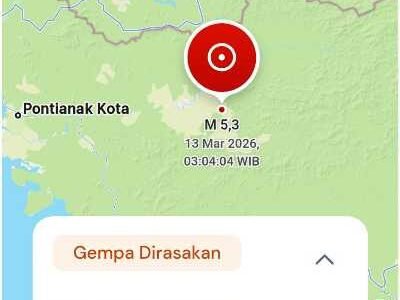 Gempa Berkekuatan M 53 Guncang Kabupaten Melawi dan Sekitarnya
