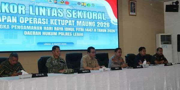 progresifjaya.co.id, LEBAK– Kapolres Lebak Polda Banten AKBP Herfio Zaki, S.I.K., M.H. bersama Forkopimda Kabupaten Lebak menggelar Rapat Koordinasi (Rakor) Lintas Sektoral dalam rangka kesiapan Operasi Ketupat Maung 2026 untuk pengamanan Hari Raya Idul Fitri 1447 H di Aula Sanika Satyawada…