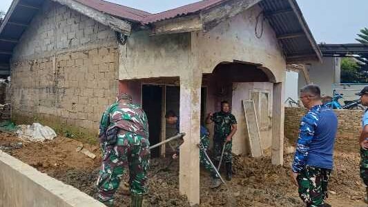 Personel Lanud SUT Bantu Warga Padang Bersihkan Lumpur Pascabanjir