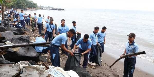 Dukung Gerakan Indonesia ASRI, Lanud Sam Ratulangi Bersihkan Pesisir Pantai Boulevard II