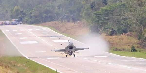 Pesawat Tempur TNI AU Uji Coba Pendaratan di Tol Lampung