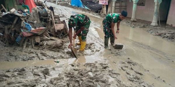 Pascabanjir, Satgas Gulbencal Yonif TP 905 Manduamas dan Koramil Batangtoru Tapsel Bersihkan Pasar dan Permukiman