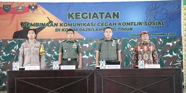 progresifjaya.co.id, KAB. LAMPUNG TIMUR – Salah satu upaya pencegahaan konflik sosial di daerah yakni dengan menggalakan komunikasi yang efektif baik itu TNI, Polri maupun pemerintah daerah. Seperti halnya yang dilaksanakan oleh Kodim 0429/Lamtim yang menggelar kegiatan Pembinaan Komunikasi (Binkom) cegah…